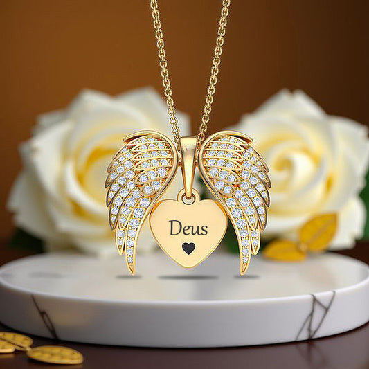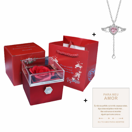 Desconto 57%Colar Asas de Anjo + Caixa de Rosa - PARA MEU AMOR 💝